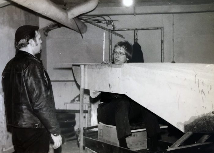 Sana ”salainen” on tässä yhteydessä täysin väärä termi, vaikka olen sitä jo useaan otteeseen viljellyt. Suorastaan paradoksina se ilmenee jopa paikan nimessä. Salalammen tukikohtaa isännöi Lahden Järvipelastusyhdistyksen sammakkomiesosasto, joka tuntee nimen Pingviinit. Viisitoista märkäpukuista miestä erikoistuneina erilaisiin pelastustehtäviin ja harjoitusharrastuksena sodan aikana veteen pudonneiden lentokoneiden etsiminen. _Hyvin järjestäytynyt porukka. Siivosi viime kesänä joutessaan lähes neljä kilometriä Lahden seudun uimarantoja – pullosirpaleita, mopedeja, huviloilla särjettyjä ja veteen heitettyjä kalusteita, ikkunalaseja ja muita kansallisen ilonpidon jätteitä, tiedättehän… Jopa soivan radion! – Mutta mistä tämä salaperäisyyden vääristynyt leima, kysyin Sakari Halmeelta, joka johtaa Pingviinien veneenrakennustöitä minkä kassakriisiltä ennättää. – Meidän työmme ei kaipaa vääristeltyä julkisuutta, hän vastaa, – haluamme työrauhan, sillä tämä ei ole show. Minä ymmärrän ja se siitä.